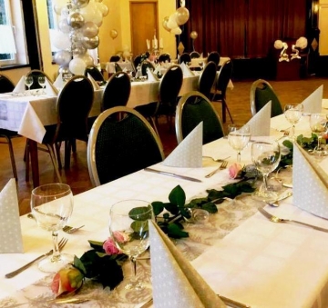 Der große Festsaal (einer der größten in der Region) ist für größere Gruppen und Feierlichkeiten